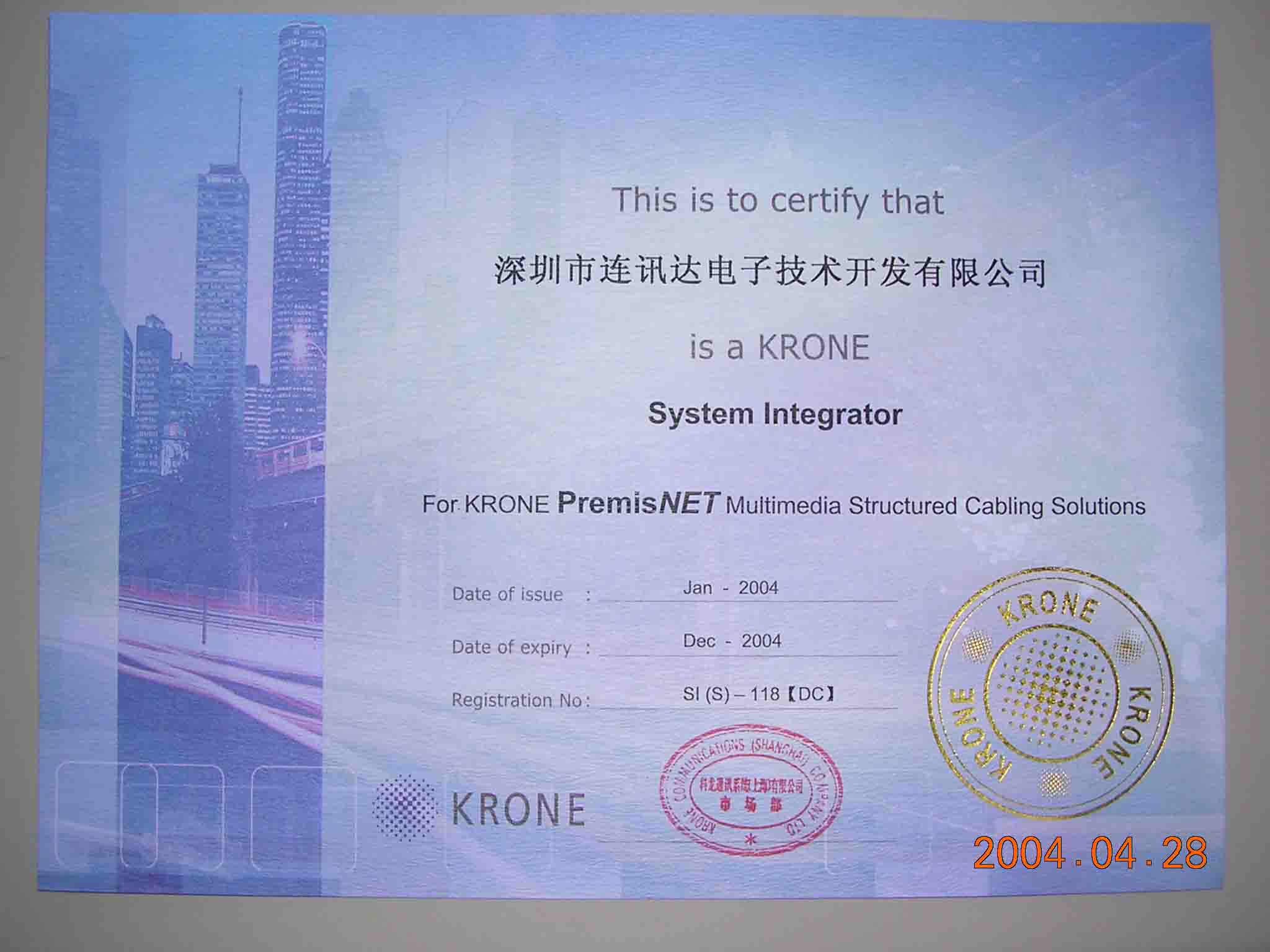 深圳市連訊達(dá)電子技術(shù)開發(fā)有限公司成立于1998年,隸屬于連訊國際集團(tuán) , 是專業(yè)提供網(wǎng)絡(luò)安全、網(wǎng)絡(luò)維護(hù)與故障診斷、測試方案、測試儀器儀表供應(yīng)及國際品牌智能布線產(chǎn)品供應(yīng),工程測試驗(yàn)收,工程師技術(shù)培訓(xùn)服務(wù)的高新技術(shù)企業(yè)。深圳連訊同時也是德國賽博、加拿大,美國光波、美國貝迪公司,美國兄弟的分銷商,負(fù)責(zé)美國福祿克FLUKE公司,德國賽博公司、加拿大EXFO公司、美國光波,美國貝迪公司,美國兄弟在大中華地區(qū)的銷售、技術(shù)支持、培訓(xùn)與售后服務(wù)等工作。
